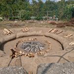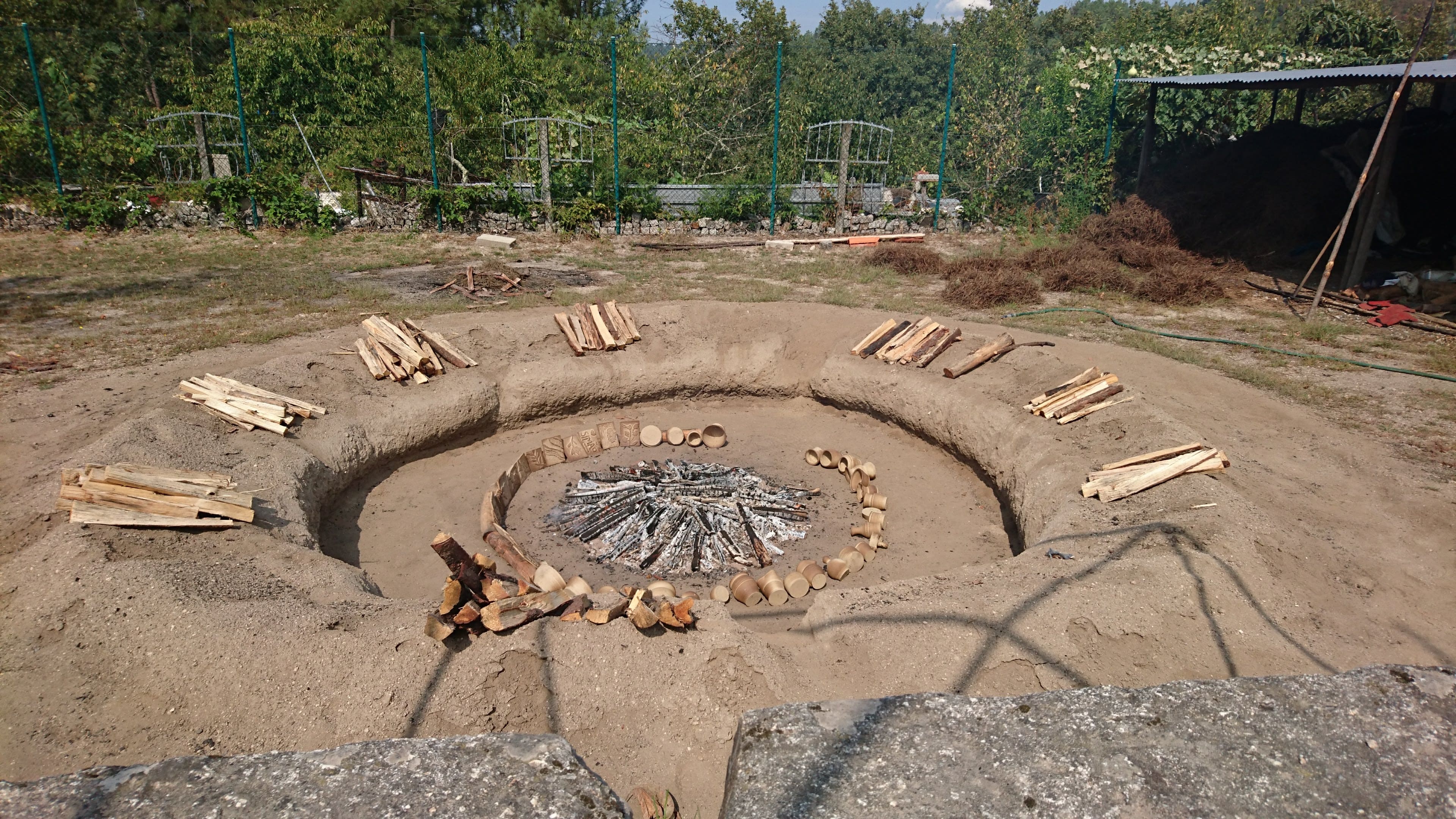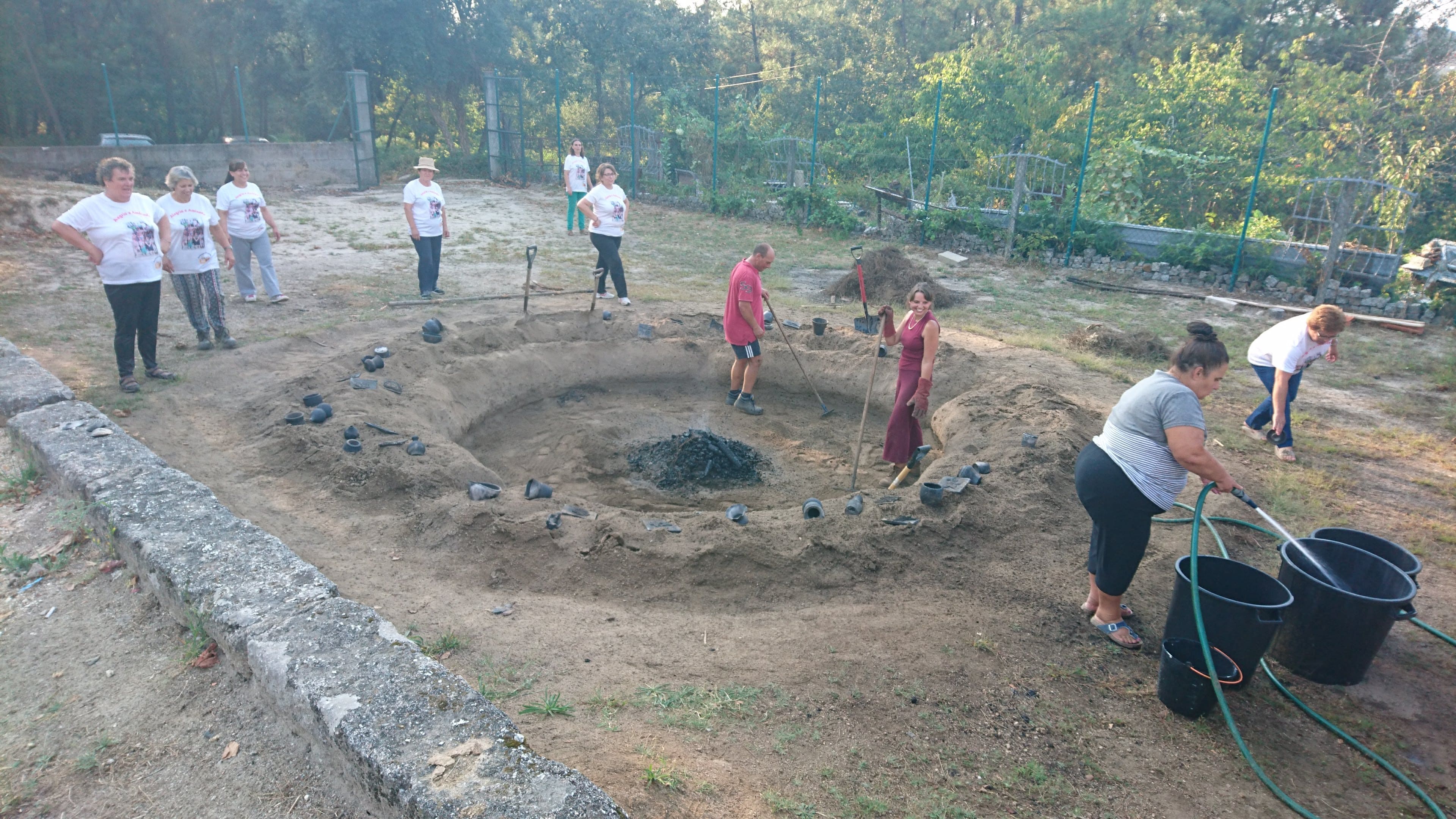 Chegada ao fim da cozedura (aproximadamente 2 horas), o forno foi desfeito com cuidado para não danificar as peças. As peças foram cozidas a temperaturas elevadíssimas e foi necessário removê-las e aguardar o arrefecimento.